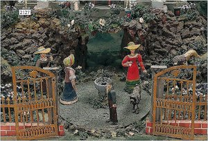 Weihnachtskrippe, 39 cm breit, 30 cm hoch, Figuren Masse