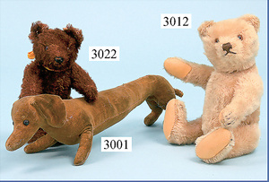 STEIFF Samttier, Karikaturdackel, 27 cm, Schuhknopfaugen, ohne Knopf, guter Zust., selten, um 1900