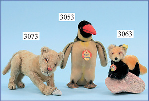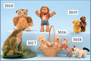 STEIFF Konv. 3 Teile, Frosch, Eule u. Macki, 10 - 12 cm, Eule mit Knopf, Macki mit Schild, guter Zust.