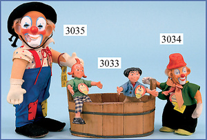 STEIFF Clownie, mit Knopf, Schild u. Fahne, Nr. 718,1, 18 cm, Orig.-Kleidung, am Mund etwas beschädigt