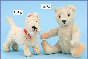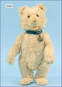 STEIFF Bär, 50er Jahre, Orig.-Teddy, weiß, 23 cm, ohne Knopf u. Schild, bespielt, guter Zust., Druckstimme defekt