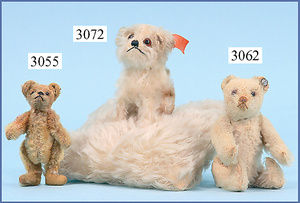 STEIFF Hund auf Kissen, mit Knopf u. roter Fahne, Nr. auf Fahne 86/3368,6, 11 cm, absolut selten, nur minim. Mohair-Verlust, guter Zust.
