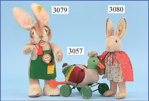 STEIFF Rodler, Hase, 30 cm, mit Knopf u. Fahne, Mohairverlust am Schwanz, sowie minim. Stellen am Hinterkopf, sonst guter Zust.