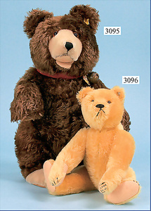 STEIFF Braunbär auf vier Pfoten, mit Halsdrehmechanik, Stimme defekt, mit Knopf, Reste roter Fahne, 2 minimale Fehler a. d. Filztatzen, Mohair in schönem Zust., Mohair am Schwanz etwas abgegriffen
