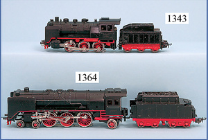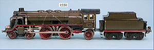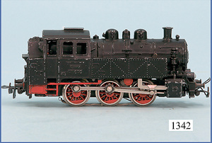 MÄRKLIN Spur 0, Schlepptenderlok B, 1040, altes MÄRKLIN-Zeichen, elektr. Ausführung, 27,5 cm, schwarz mit roten Zierlinien, Knauf auf Führerhaus fehlt, sonst bis auf kl. Stellen gut