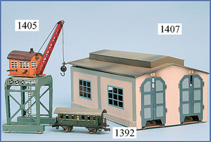 Bedürfnisanstalt, Blech handlackiert, 10,5 cm breit, Dach liegt lose bei, Lackfehler, dazu 1 Gepäckwaage BING, Blech lithogr., Lackfehler