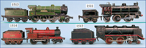 ERNST PLANK Uralt-Zug, Dampf, Blech lithogr., Lok handlackiert, Tender u. Wagen lithogr., Spur 2