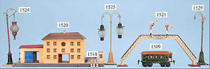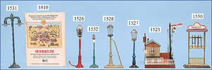 MÄRKLIN 2 Teile, Lampen, 2-armige Gittermastlampe, blau, 1-armige Lampe grau/grün, 13450, bespielt, guter Zust.