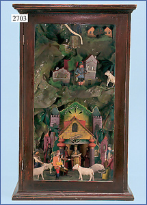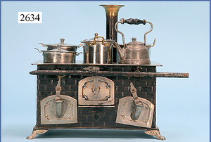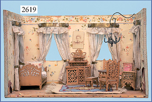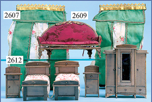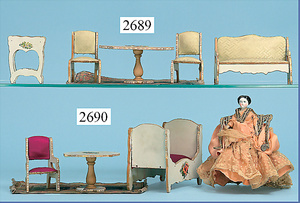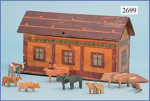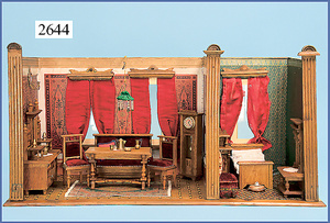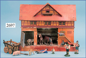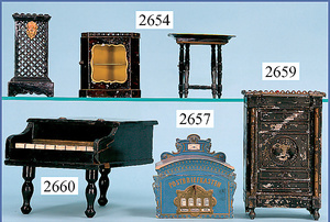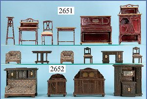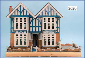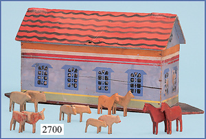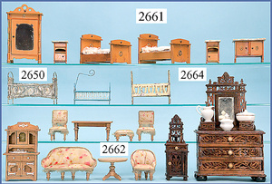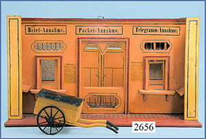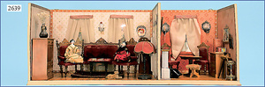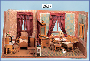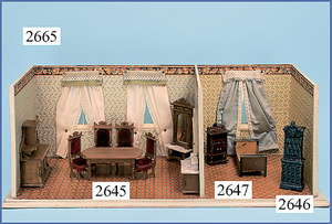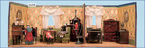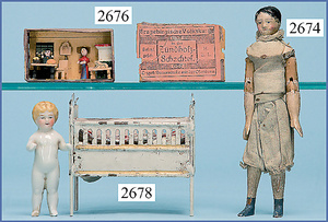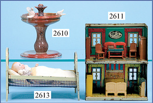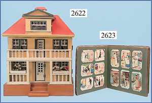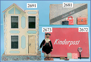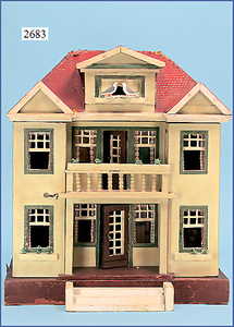 wohl GOTTSCHALK Puppenhaus, um 1910, Fassade zum Öffnen, 4 Zimmer, Treppe, Toilette, Orig.-Bemalung, Orig.-Tapete an Wand u. Boden, umbauter Eingangsbereich, Balkon, Treppe, 54 cm hoch, 45,5 cm breit, 29 cm tief, schöne Gr., Fenstergläser fehlen