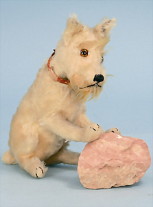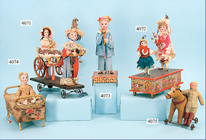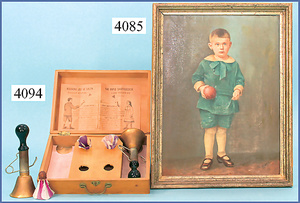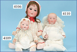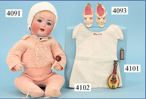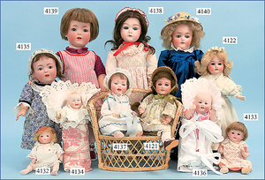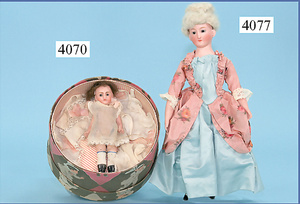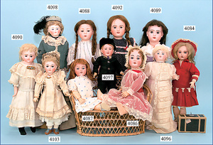 Biskuitporzellankopf-Puppe, Typ BRU, gemarkt Nr. 8, Deutsch, für den franz. Markt, Kurbelkopf, braune fest eingesetzte Glasaugen, durchst. Ohren, leicht off./geschl. Mund, schönes helles Porzellan, Orig.-Fellperücke wurde nicht entfernt, von außen keine Risse erkennbar, Gliederkörper mit 8 losen Kugeln, sowie festen Handgelenken, Orig.-Kleidung, Unterkleidung u. Schuhe, Seide, teilw. verschlissen, 40 cm, selten, schöner Ausdruck