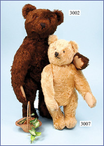 STEIFF ausdrucksstarker Bär, ca. 1925, dunkelbraun, 62 cm, ohne Knopf, lange abgeknickte Arme, leichter Buckel, ein wenig Füllverlust in einem Arm, Filztatzen in gutem Zust., bis auf kl. Stellen Mohair-Verlust, schönes volles Fell, außergew.. Gr.