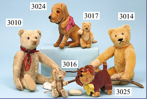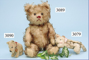 STEIFF Hund, Radler, 9 cm, ausgef. Gr., mit Kopfdrehmechanik, mit Knopf u. Schild, teilw. Mohairverlust, ausdrucksstark