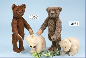 STEIFF Mecki u. Micki, 25 cm, Mecki mit Knopf, Schild u. Fahne, HÖRZU-Aufdruck auf der Rückseite, ohne Pfeife, Micki mit Schild, HÖRZU-Aufdruck auf der Rückseite, ohne Knopf u. Fahne