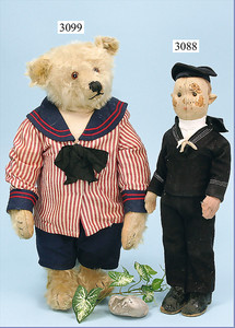 STEIFF Puppe, 37 cm, Matrose, mit Knopf, Filzschäden im Gesicht u. am Körper, 1 Hand mit Heftpflaster überklebt