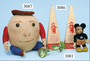 STEIFF Karikaturfigur, Filz, 27 cm hoch, Knopfaugen, ohne Knopf u. Fahne, 1 paar Flickstellen am Filz, ausgef.