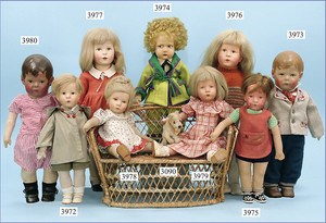 STEIFF 4 Fingerspiel-Puppen, orig.-verblistert, alle mit Knopf, Verblisterung mit Knopf u. Fahne, Nr. auf Fahne 7080/06, 1 Lasche an der Verblisterung fehlt, sonst etwas verschmutzt, neuwertig