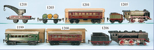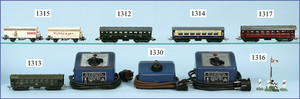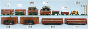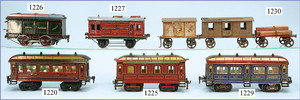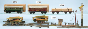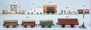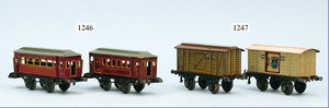 BING 2 Teile, Spur 1, Güterwagen, Nr. 200, Münchner Kindl, 19,5 cm, 1x gedeckter Güterwagen, 1240, Fenster durchbrochen, guter Zust.