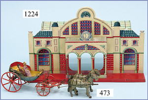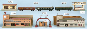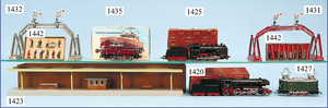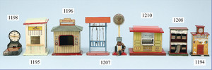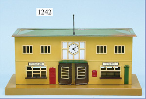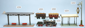 BING früher Bahnhof, mit Bahnsteigüberdachung, Blech lithogr., 34 cm breit, 21 cm hoch, neuwertig, im Orig.-Kart., ca. 1920, nahezu unbespielt, im Orig.-Kart.