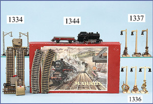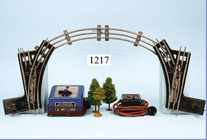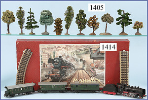 MÄRKLIN Spur 0, Gleismaterial, Weichenpaar 13610WB, ca. 40 Teile gerade u. gebogen, 2 Transformatoren, 1 Handweichenpaar, Radius 8, davon 1 Weiche beschädigt, einige Bäume, Zubehör