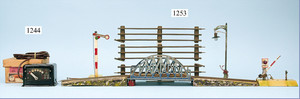 2 Teile Doppelflügel-Signal, Blech lithogr., 28 cm, 1 Gittermastlampe, 27 cm
