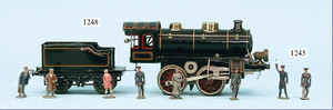 12 Teile Eisenbahnfiguren, Guss, handlackiert, Spur 0, Reisende, 1 Schaffner, guter Zust. ( n. a. T. f. )