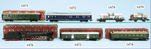 BING 2 Teile, KRAUSS FANDOR, Spur 1, Blech lithogr., International Express, Personen- u. Gepäckwagen, bespielt, Lackfehler am Dach, sonst guter Zust.