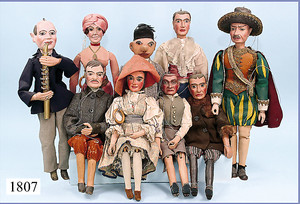 2 Teile Puppenstuben-Puppen, 9 u. 9,5 cm, 1x Brustblatt, Biskuitarme u. -beine, Stoffkörper, 1x Ganzbiskuit, fester Kopf, bewegl. Arme u. Beine, schöne alte Kleidung