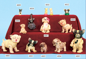 JUNO Hund, 13 cm, Celluloid, 5-fach gegliedert, Stirn u. Schnauze etwas ausgebessert, selten, guter Zust.