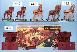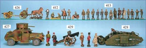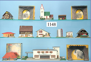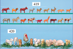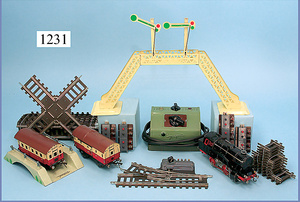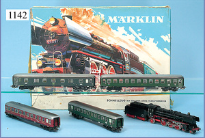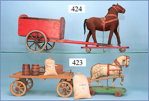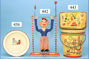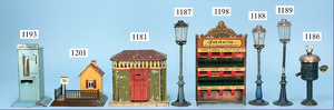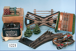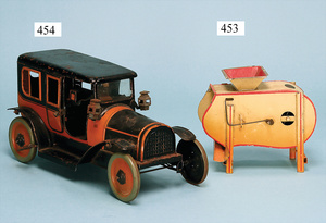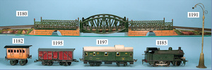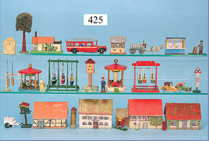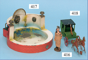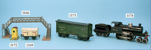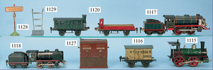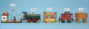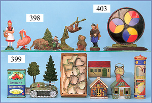 ausgef. Puppenstuben-Möbelprogramm, um1900, Kamin mit Bild, 24,5 cm, Holz- u. Zinnteile, Sitzgruppe mit Bank, 17 cm, Tisch Durchm. 12,5 cm, 2 Stühle, 2 Schaukelstühle, Kommode, 2 Betten, meist guter Zust., einige Kleinteile fehlen, dazu einige Kleinteile,1 Puppenstuben-Gardinenstange, Orig.-Holzkart., mit lithogr. Deckbild (n. a. T. f.)