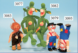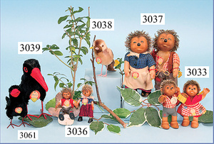 Mucki u. Macki, Macki Schildaufdruck HÖRZU, beide mit Knopf, Schild u. Fahne, Nr. auf Fahne Mucki 7628/12, Macki 8712,70, leicht bespielt, 12 cm