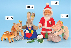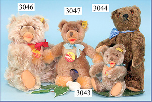 STEIFF, Orig.-Hase, mit Knopf, Schild u. Fahne, Nr. 4325.00, mit Orig.-Filzkleidung, mit Korb, 24 cm, guter Zust.