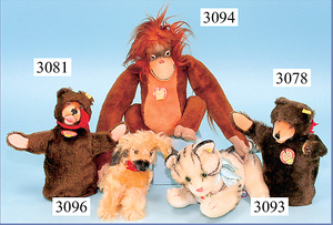 STEIFF, Hand-Puppe, Teddy-Baby, alter Druckbuchstaben- Knopf, Schild u. Fahne, Schild mit roter Schrift markiert, Nr. 317, 24 cm, guter Zust., unbespielt