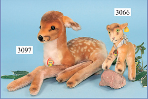 STEIFF, Rehkitz, mit Knopf, Schild u. Fahne, Nr. 1823/35, 42 cm, liegend, unbespielt, schöner Ausdruck
