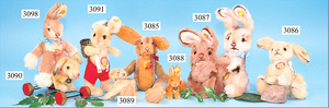 STEIFF, Konv. 2 Teile, kl. Hasen, beide mit Knopf, Schild u. Fahne, 1 Hase sitzend, Nr. 3309.00, 10 cm, 1 Hase rennend, Nr. 1308.00, 7 cm, beide Teile unbespielt