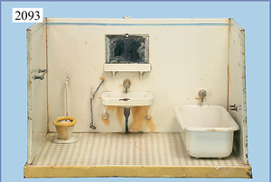 MÄRKLIN, Badezimmer, 31 cm breit, 21 cm hoch, 22 cm tief, Waschbecken, Badewanne, Toilette, leicht bespielt, kl. altersbedingte Lackfehler, sonst gut, Abdeckschraube am Wasserbehälter fehlt