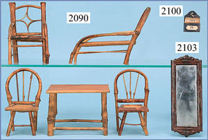5-teiliges Balkon-Möbelset, im THONET-Stil, für gr. Puppenstube, Tischhöhe 9 cm, Liegestuhl Länge 15 cm, 1 Möbelprogramm aus der Kolonialzeit