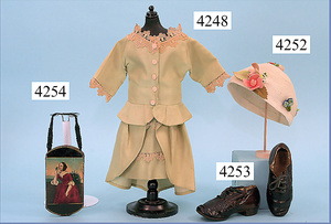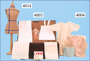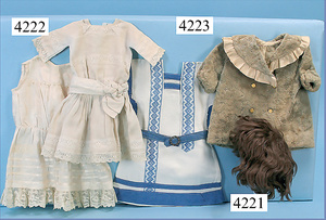 Konv. Puppenkleidung, 1910 - 1930, einige Teile jünger, 3 Mieder, einige Kleider u. Unterkleider ( n. a. T. f. )