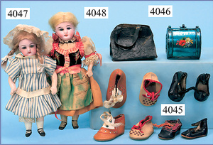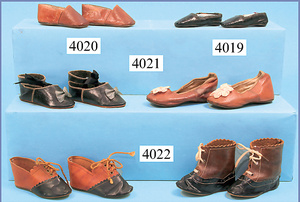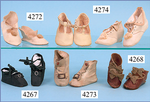 2 Paar Puppenschuhe, 11 u. 9,5 cm, kl. Paar, neu, signiert R.S., Leder