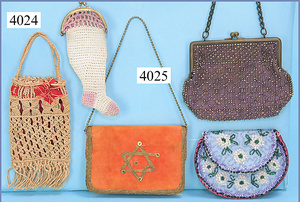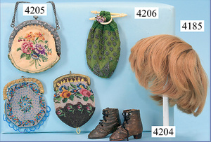 3 kl. Taschen (Deko für gr. Puppe), Perlenarbeit, , 9 - 10,5 cm, davon 1 Tasche ohne Griff