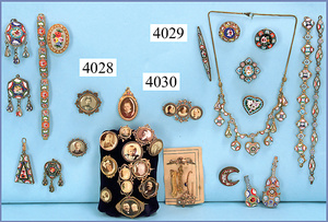 5 Teile Anhänger, Messing, aufwendige Emaillearbeit, filigran gestaltet, dazu kl. Kinderarmreif, Messing, Emaillearbeit, schöne Puppendeko, ca. 1910