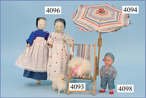 SCHÖNHUT, Holzpuppe, 42 cm, ausdrucksstarker Kurbelkopf, blaue Intaglioaugen, geschl. Mund, Holz-Gliederkörper, mit Drahtaufzug, alte Kleidung u. Schuhe, alte Perücke, sehr schöner Orig.-Zust., auf dem Rücken signiert, SCHÖNHUT Doll, patent USA, selten