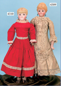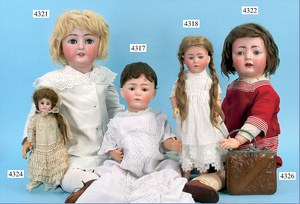 SIMON & HALBIG, K & R, Biskuitporzellankopf-Puppe, vorne gekennzeichnet mit 1 W, 70 cm, blaue Schlafaugen, off. Mund, Zähne, durchst. Ohren, schöner ausgeformter Gliederkörper, sehr guter Zust., Echthaarperücke neuer