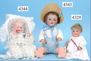 HEUBACH, Sonne, Biskuitporzellankopf-Puppe, Gr. 10, 50 cm, braune Schlafaugen, geschl. Mund, Masse-Sitzbabykörper mit untersch. Handhaltung, Hinterkopf restauriert, Kopfdeckel wurde nicht entfernt, Perücke neuer, Transportrisiko für Augenmechanismus beachten