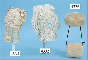 Puppen-Muff, mit Haube, für ca. 10 cm Kopfdurchm., für Puppe 1910