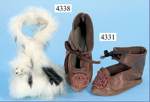 1 Paar Puppenschuhe, Frankreich Leder, 10 cm, für gr. Puppe, guter Zust.