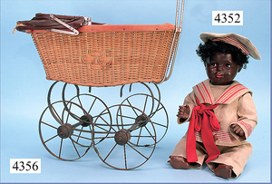 Puppenkinderwagen, Korb, Griffstange gedreht, 62 cm, Orig.-Zust