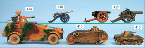 2 Kanonen, Blech, 16 cm, sowie Blech- u. Gussteile, 18 cm
