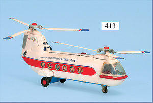 Hubschrauber, Flying Bus, Japan, 62 cm, mit Rotorblättern gerechnet, Batterieantrieb, bespielt, Frontscheibe, 1x neu befestigt, ein wenig Flugrost