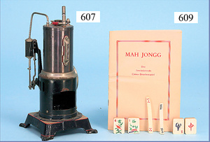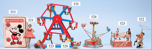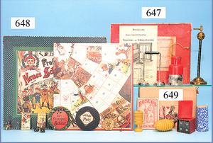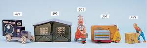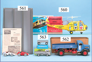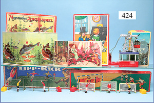 Konv. 5-teilig, LEHMANN Rigi 900, Seilbahn, sowie 2 Tipp-Kick u. 2 Brettspiele, 50er Jahre, alles im Orig.-Kart.