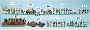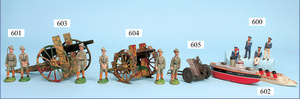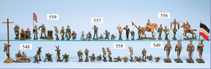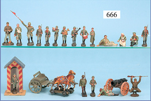 Konv. ca. 40 Teile ELASTOLIN u. a., kl. Serie, 6,5 cm, Musiker, marschierend, kämpfend, Sanitäter, 1 Gespann, LINEOL, mit Kanone, einige Reiter, meist Zust. 2